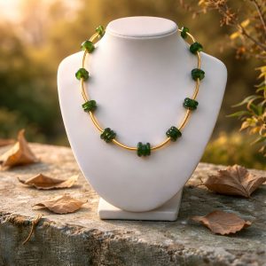Zeitlose, elegantes Schmuckstück mit grünen Glassteinen.