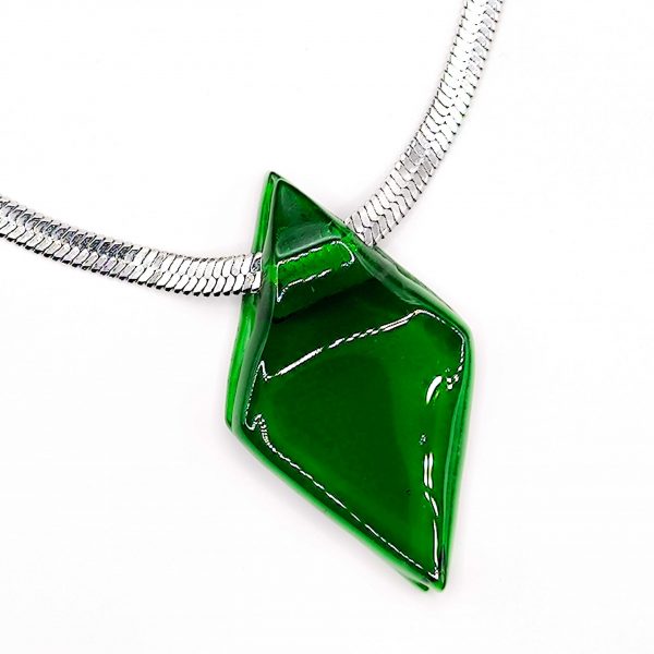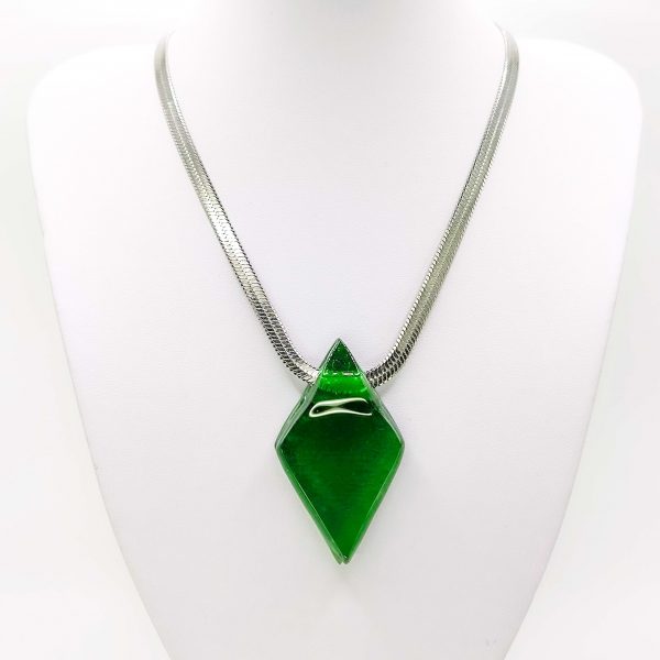 Traumhafte Halskette mit Glaselement in grünem Farbton und Edelstahlkette silber