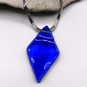 - Traumhafte Halskette mit Glaselement in blauem Farbton und Edelstahlkette silber