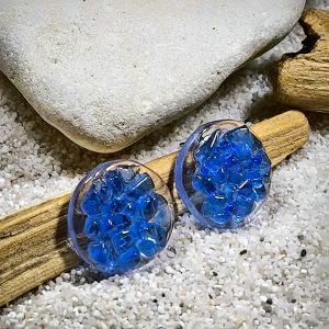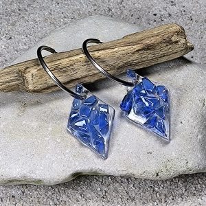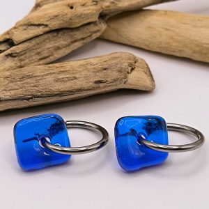 - Zeitlose, eleganter Ohrschmuck mit Glaselement in blau. Edelstahl