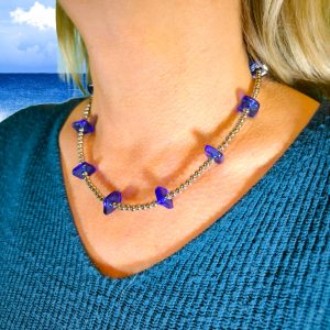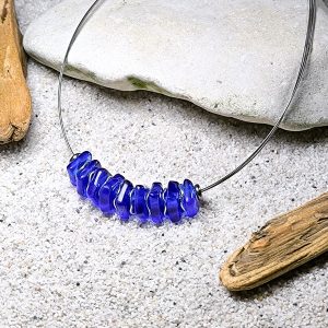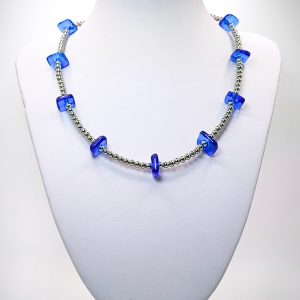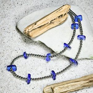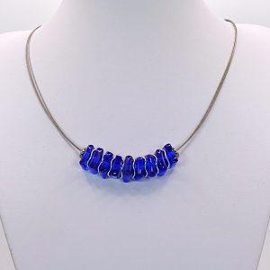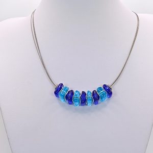 - moderne Halskette mit Glaselementen in blau. Edelstahl