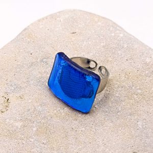 - Schöner Ring mit Glaselement in blau. Edelstahl silber