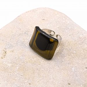 - Schöner Ring mit Glaselement in braun. Edelstahl silber